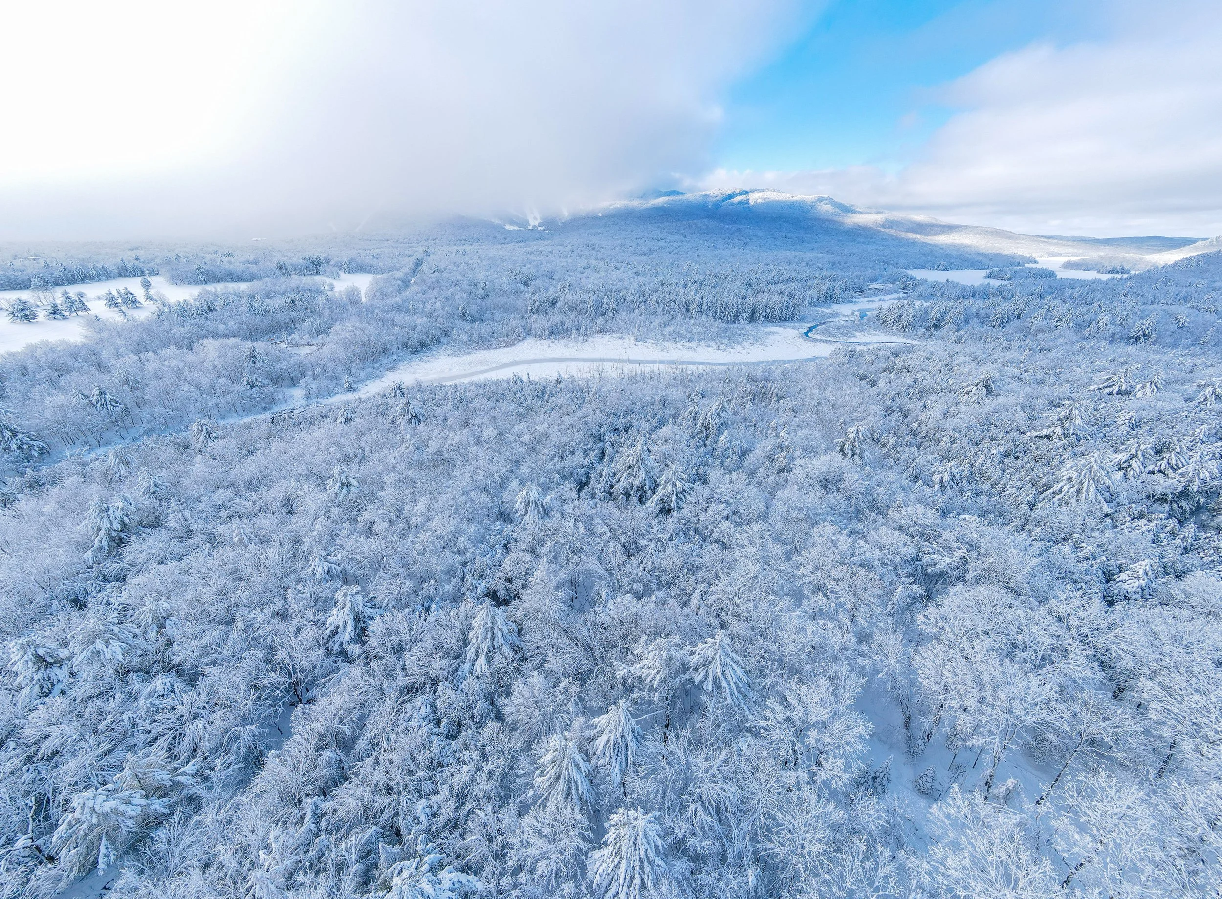 Un langage visuel nordique immaculé — forêts boréales enneigées, crêtes d’altitude, terrains gelés et vastes paysages hivernaux façonnés par l’altitude et la latitude.